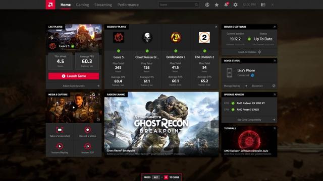用户体验的另一个重大改进是AMD的新游戏中心。该公司希望Radeon卡所有者将其用作一个通用的游戏启动器。所以,即使你在Steam, Epic等平台上有游戏,你也可以在2020年肾上腺素平台上找到并开始游戏。但你也可以调整他们的图形设置和跟踪统计。