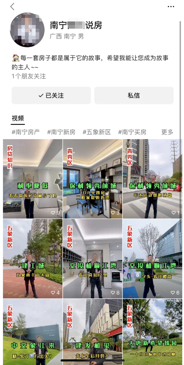 我学着那些已经成为地产大V的中介,把自己个人抖音号的名称,改成了“xxxx看房”