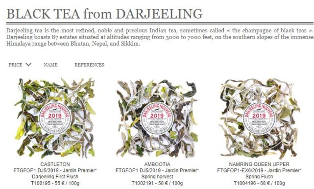 可以看到,2019 年春茶的茶叶,2 两约为 55-68 欧元。大吉岭的春茶带有淡雅的花香,可算是南亚红茶的巅峰地区。不同产区,价格也略有不同。