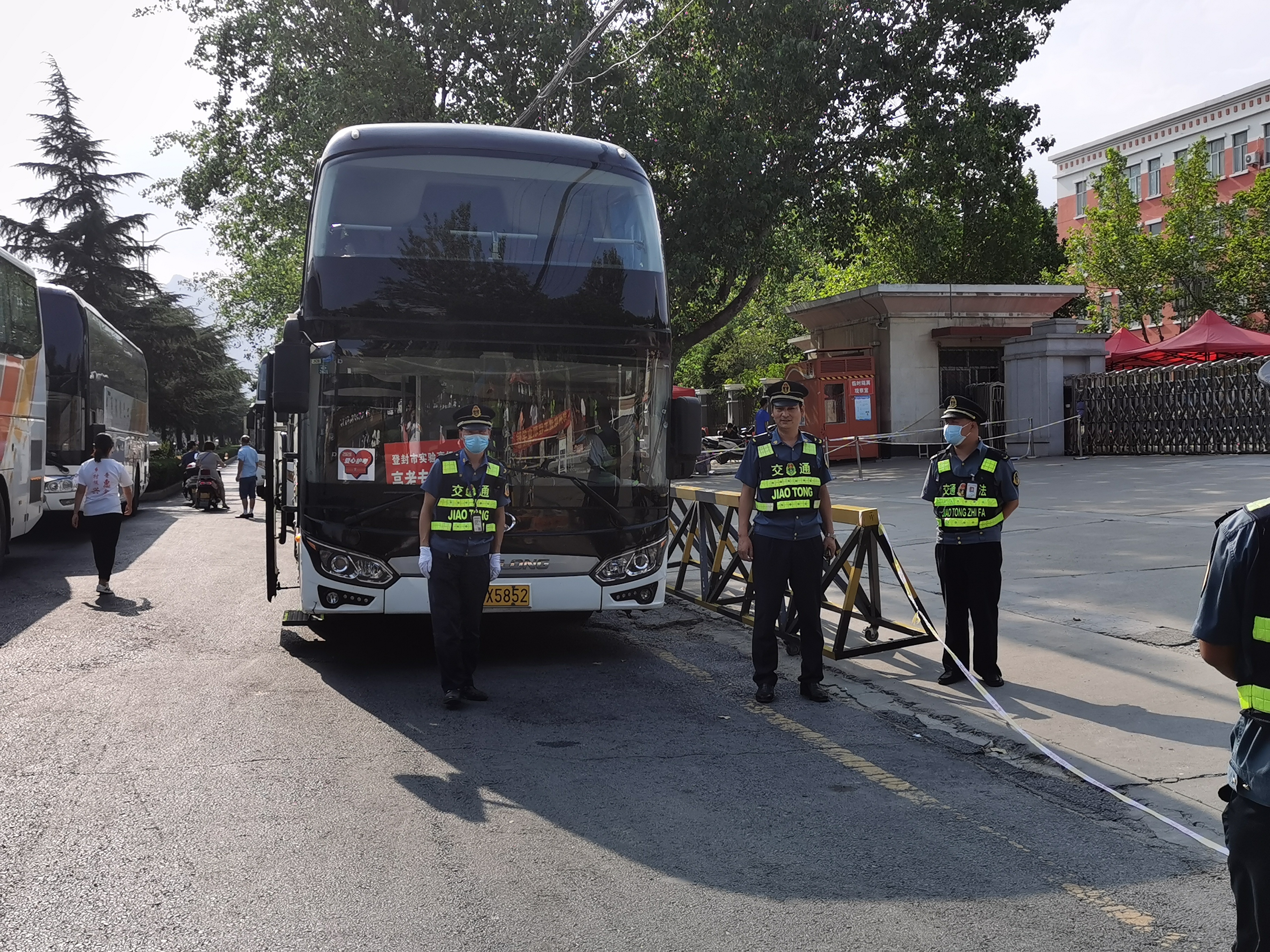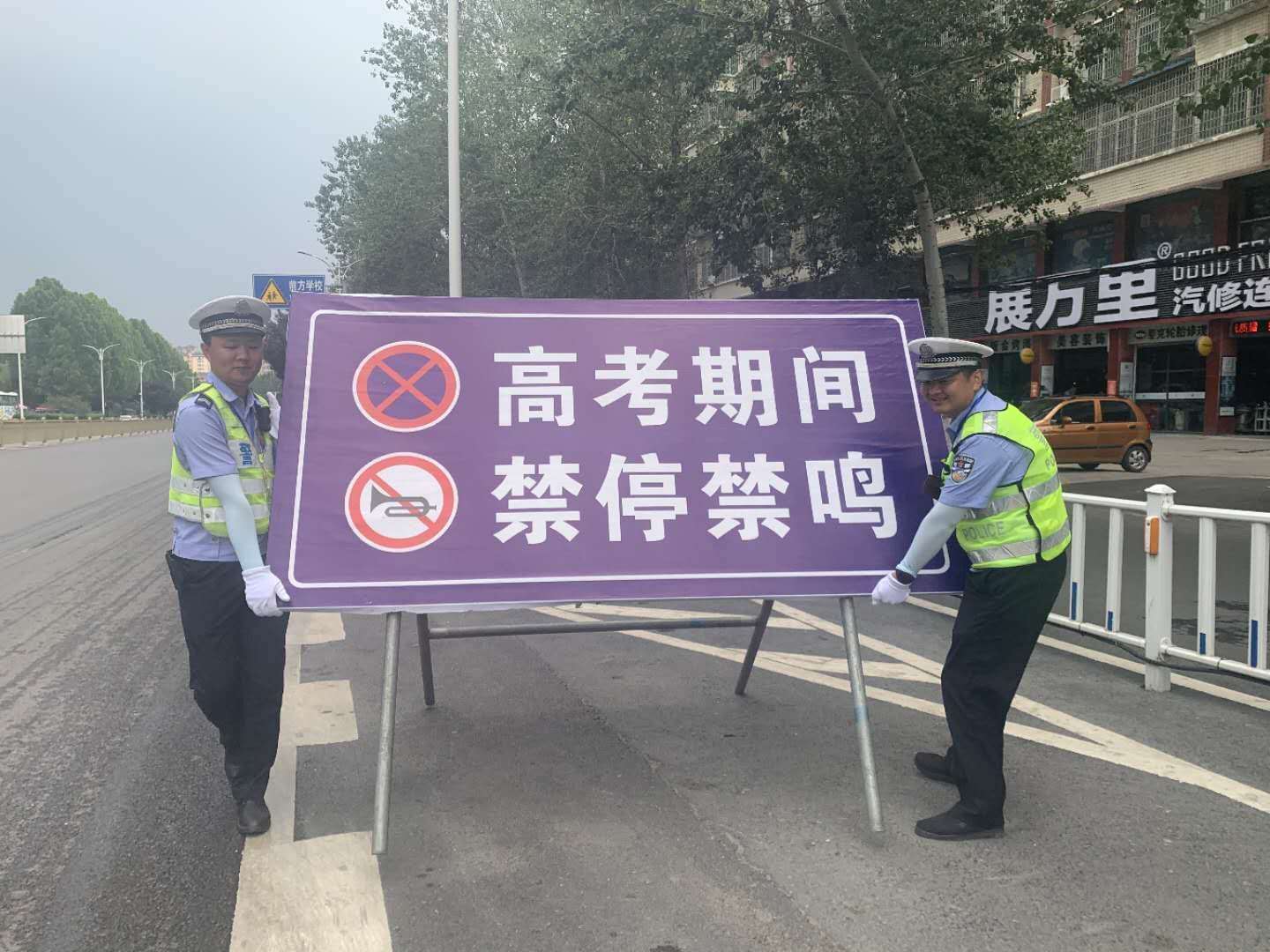 交警大队的同志们,盯着烈日还在指挥交通,为考生的出行更为顺畅。