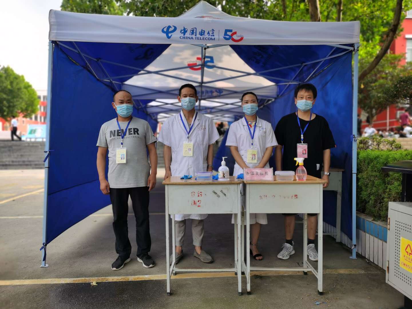 因为疫情,卫健委的同志们也做好现场防疫工作。