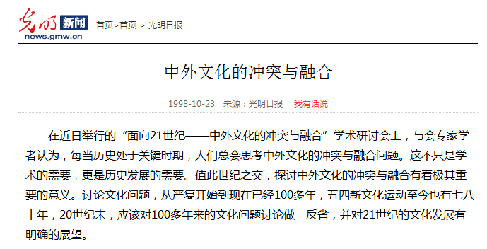图为:1998年光明日报关于严复探究中外文化问题的报道