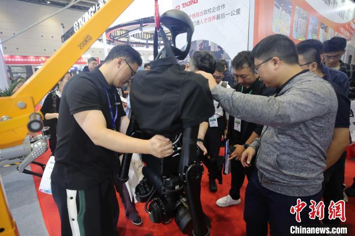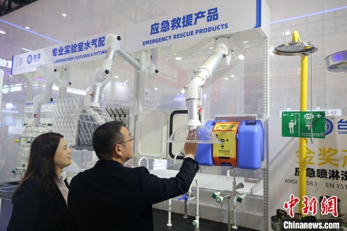 展商为参观者介绍应急救援产品。蔡亚群 摄