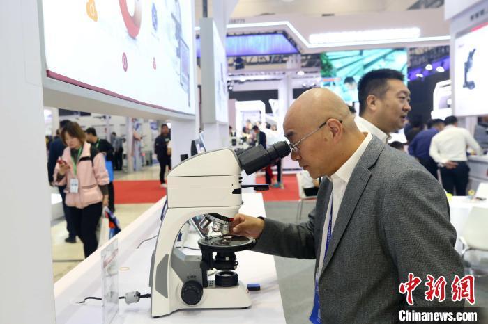 参观者现场体验科研显微镜。蔡亚群 摄