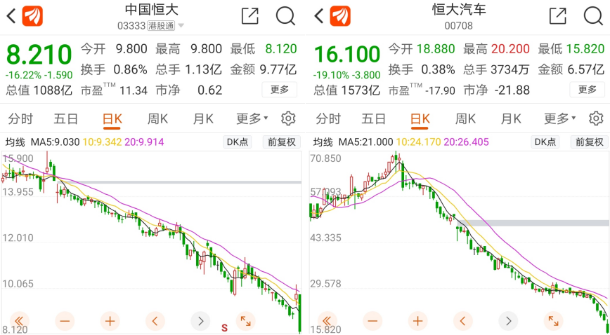 截至7月19日收盘,中国恒大总市值跌至1088亿港元,相比前一交易日,市值蒸发超209亿港元;恒大汽车单日蒸发市值超371亿港元,恒大系总市值累计蒸发740亿港元。