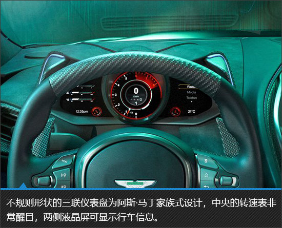 在内饰设计上,新车带来的也是超乎想象的激进主义,碳纤维以及各类皮革材质充斥着整个驾舱,战斗气息和豪华氛围相当的浓郁!另外,色调上的搭配也是非常讲究,其采用了黑蓝配色设计,并且座椅上还有阿斯顿·马丁的品牌标识刺绣,另外,车内还有限量版车型独有的徽章,彰显其特殊身份。