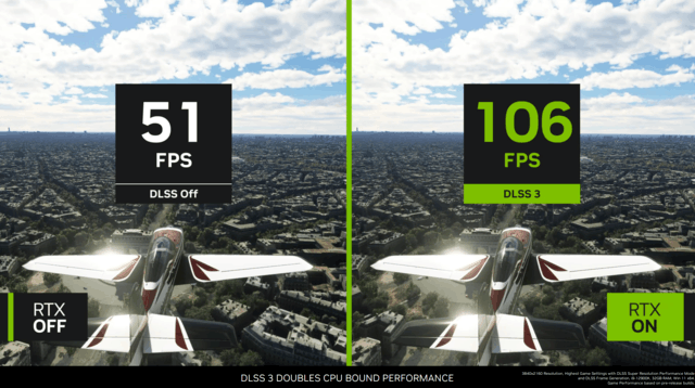 另外由于DLSS 3的帧生成是在GPU中处理和运行的,所以即使遇到CPU瓶颈的游戏,AI同样能够提升帧率。这也是为什么在此次发布会中说到,DLSS 3能够突破CPU的限制来提升帧数。