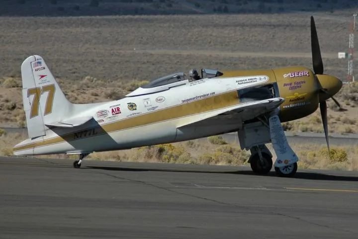 图10. 性能强悍的F8F未能赶上二战,却在战后竞速飞行中大放异彩,这架绰号“稀有熊”的F8F经过深度改装后,创造了活塞式飞机和单发螺旋桨飞机的850千米/小时速度纪录,至今仍未打破