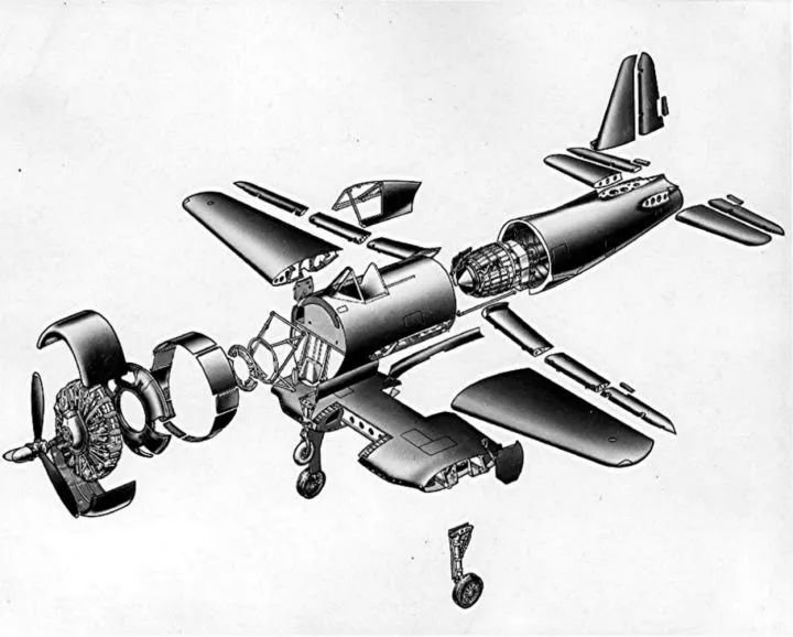 有趣的是,FR-1的武器配置看似薄弱,却与格鲁曼公司同时期研制的F8F“熊猫”战斗机高度一致。这并不是巧合,根据太平洋战场经验,美国海军已经意识到,一味增强火力的重型战斗机已经很难取得性能突破。而轻型战斗机无论是航母甲板操作性,还是在空战中的加速性和爬升率都将占有明显优势,为此适当削弱武器也无可厚非。但是无论怎么减重,装甲防护都是不能马虎的,除了两个总容量680升的自封闭油箱配置了82.1千克的防弹装甲之外,FR-1在飞行员前后也配备了重达78.5千克的装甲。
