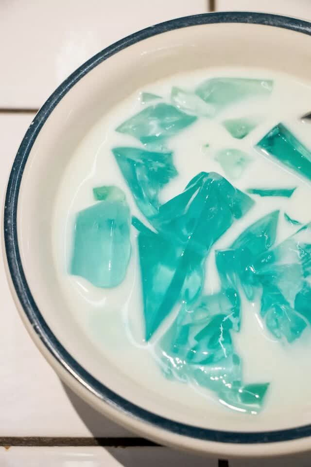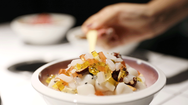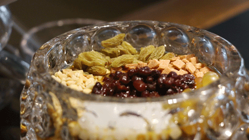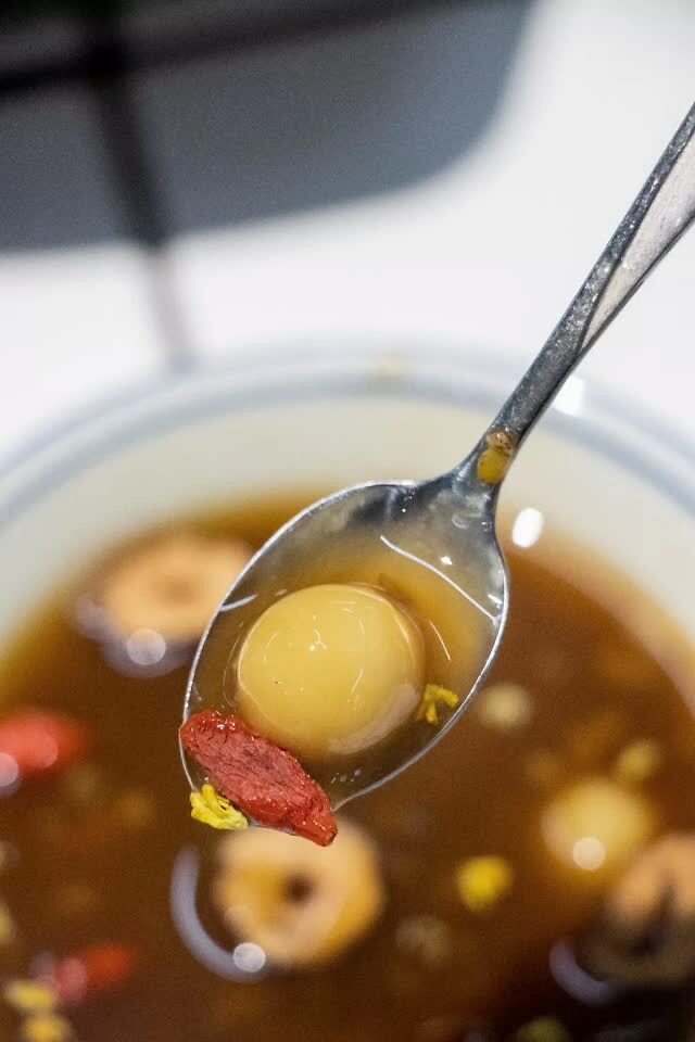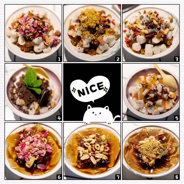 非常有妈妈味道的 红枣枸杞冰汤圆 ,还有桂花香,爱了爱了~ 透心凉蓝冰粉 ,不管是名字还是颜值,都让人感到清凉~解辣解腻都是佳选。