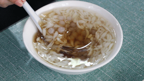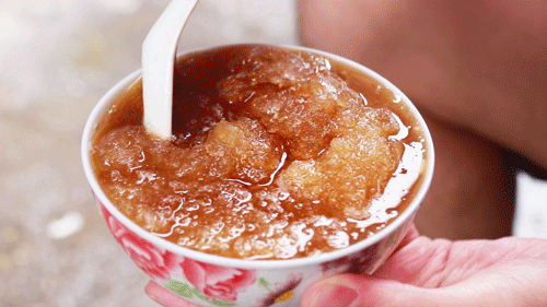 他们家是 冰沙汤圆的鼻祖 ,一火就是25年 。现煮的卡卡汤圆,只放醪糟 ,只加红糖, 每一口都是冰沙和糯汤圆。上冷下热,稍微搅拌一下,就是 冰冰凉凉 充满夏天的清爽感觉。