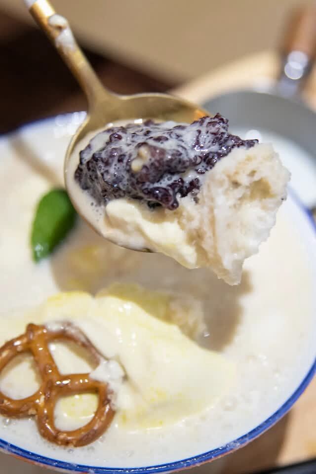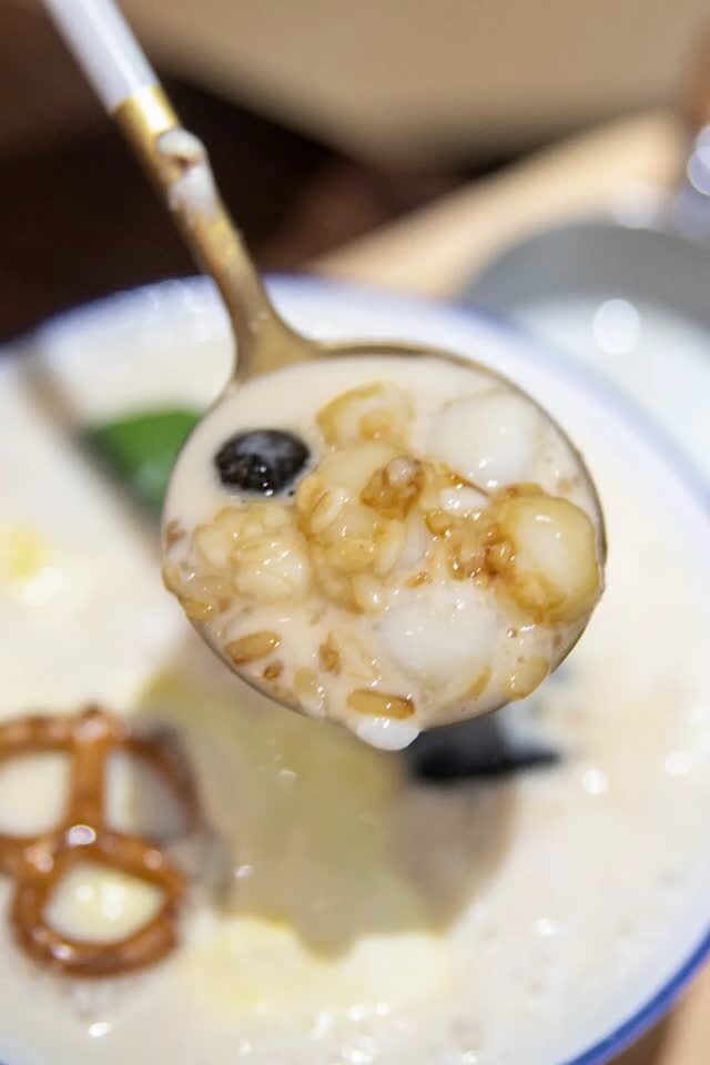 冰汤圆上面也是一层咸奶盖和碎冰。第一口下去满嘴的酒香味儿,我就知道一定有醪糟。还有紫米、仙草冻.....堪称冰汤圆界爱马仕。
