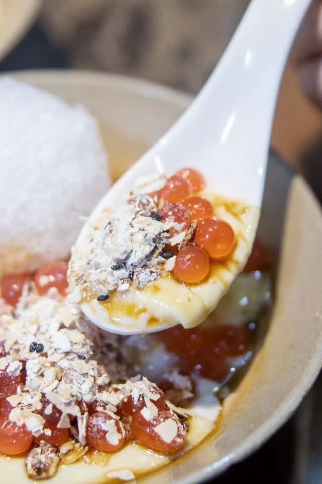 我要吹爆他们家的冰豆花!老板自己研发出来的,加了豆花、草莓爆珠还有麦片。神奇又美妙的神仙组合,一口就超满足!尤其是吃完麻辣热腾的火锅之后,来一碗冰豆花,简直完美!