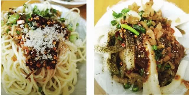 这个凉粉是手工豌豆凉粉,里面的黑点点就是最好的证明,所以吃起来 爽滑可口又不失劲道, 除了凉粉,凉面也在卖,都要放七八种调料。