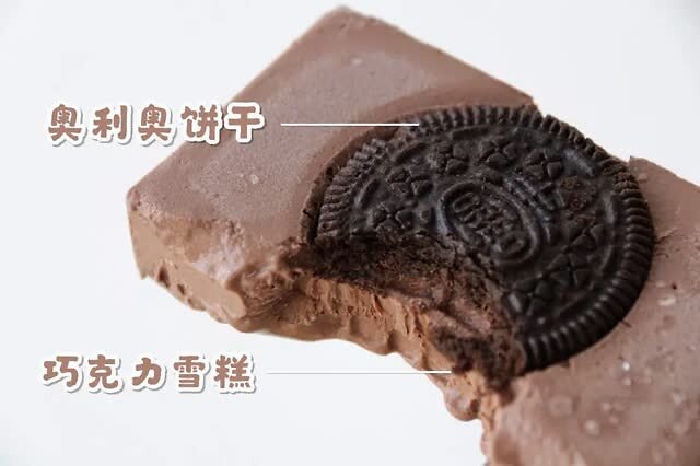 中间有块儿奥利奥饼干的雪糕,看起来很像一个照相机,中间的奥利奥是软的,和巧克力味的冰淇淋一起吃下去就是整个夏天。
