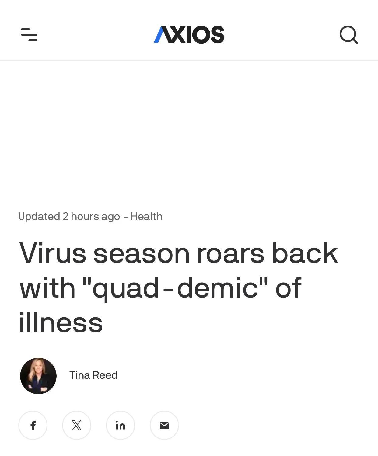 报道说,美国目前正处于比去年更加活跃的病毒流行季节,而这“四种疾病大流行”正同时爆发。