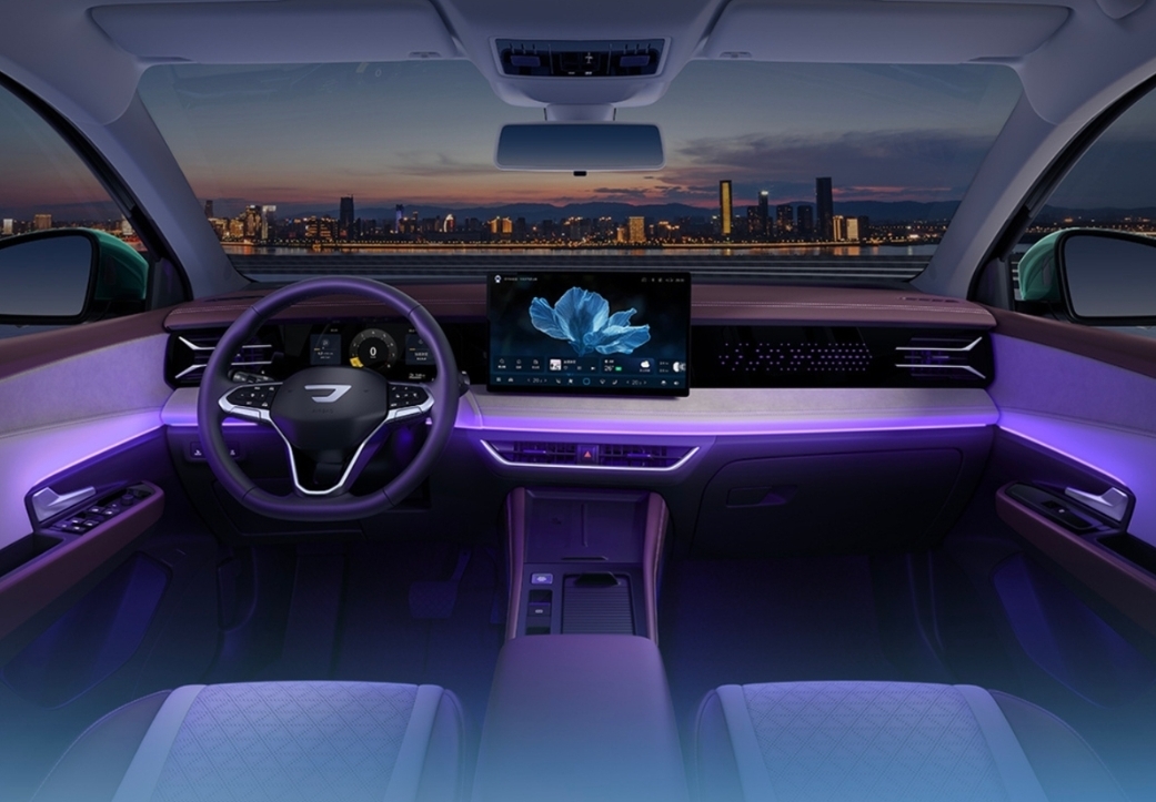 内饰方面,捷达VS8内饰采用较为简约的设计,并采用10.25英寸全液晶仪表+14.6英寸悬浮式中控屏幕,看上去科技感十足。并且,新车在车门板以及中控区域还采用了翻毛材质,配合打孔的软皮座椅,豪华舒适感营造的十分到位。值得一提的是,新车在副驾驶前方还采用了发光饰板。值得一提的是,新车提供了25处灵活储物空间,后备厢容积654L,并且后排座椅放倒后,秒变“大床房”。