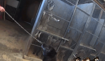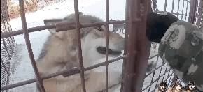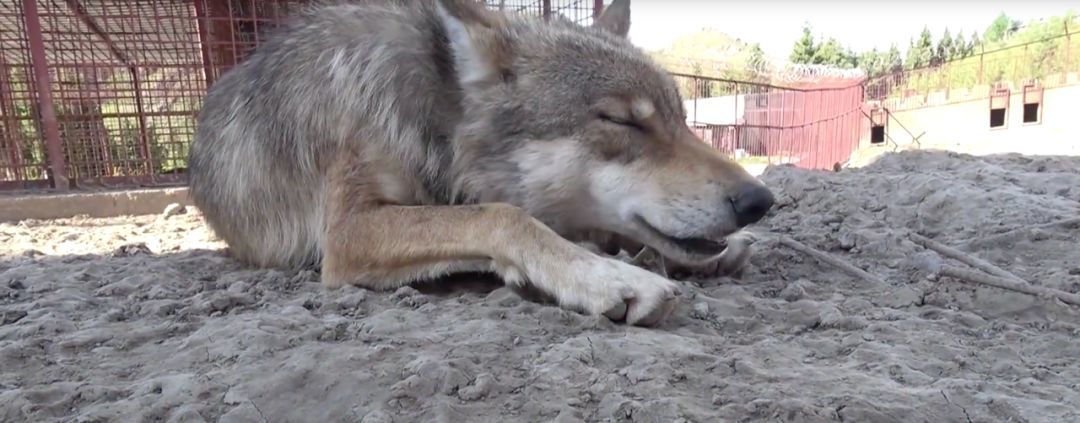 朋友说这只狼刚生完狼崽,因为担心对人造成伤害所以被关起来了。