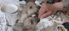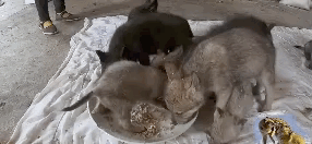 一个个贼头贼脑的小狼崽,看见食物就轰上去疯抢▼