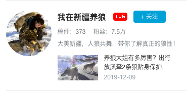 UP主的名字是“我在新疆养狼”,简介中也是“人狼共舞”。