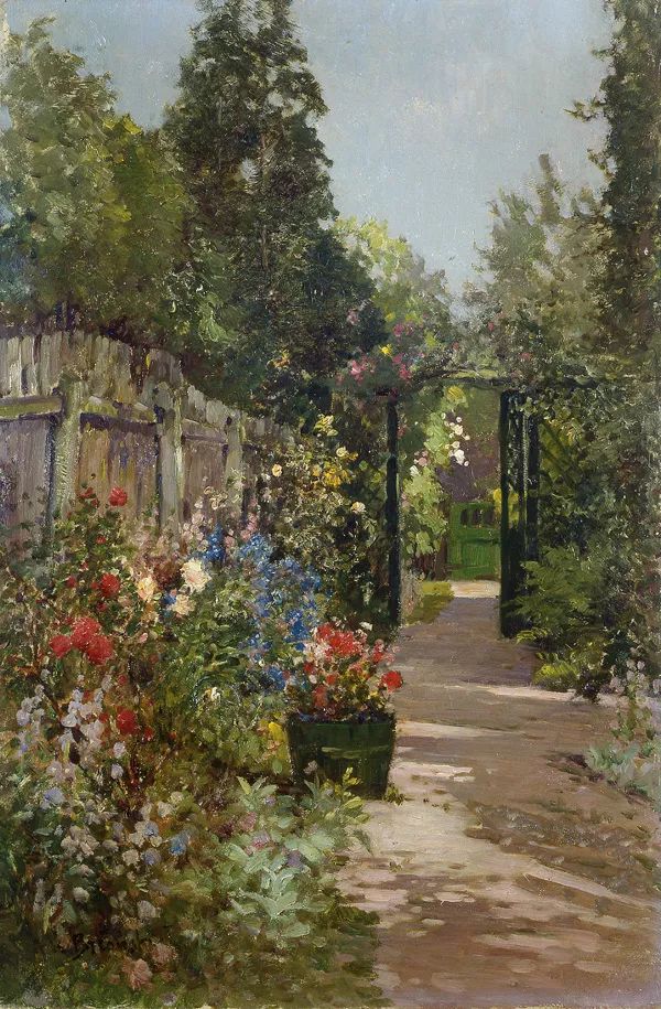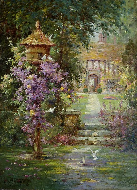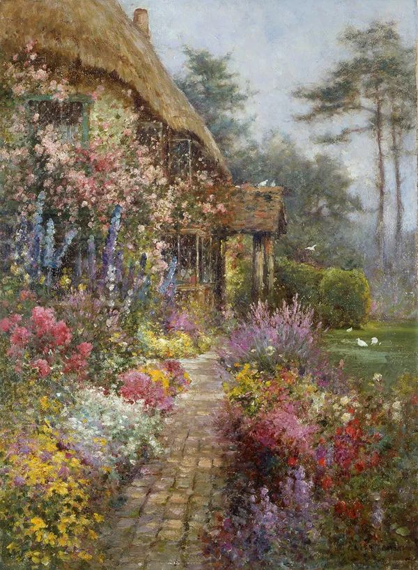 英国式花园是英国的作家、 诗人和艺术家在整个世纪的灵感来源,在维多利亚时代则表现得更为明显。羽扇、 百合、 hollyhocks、紫罗兰和其他丰富多彩的植物区系是庄园中常见的植物。这些美丽的花园恰恰是维多利亚女王时代的艺术家 Alfred Fontville de Breanski,Jr.(1877-1957) 最喜欢的地点之一。阿尔弗雷德二世像他父亲的学生一样经常绘苏格兰和威尔士山区的风景以及一天中不同时间高原风光对太阳光的影响。在1905年至1920年期间 de Breanski 绘了一系列的色彩鲜艳,略带印象派的英国式花园美景。作品中充满了光与色,这在他的一生都是非常受欢迎。