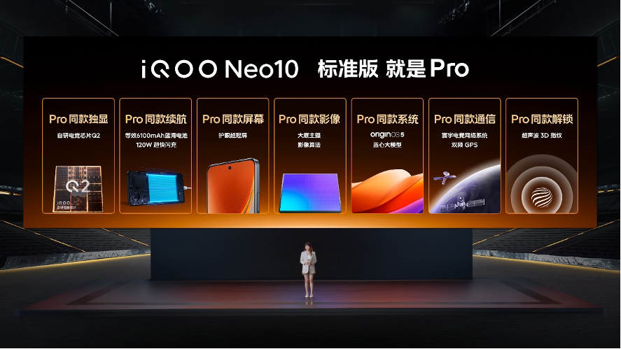 除搭载旗舰机芯片“口碑之选”的高通第三代骁龙8,iQOO Neo10核心配置全面看齐Neo10 Pro:自研电竞芯片Q2、续航快充组合系统、护眼超冠屏、vivo旗舰同款大底主摄和核心影像算法、23根环绕式天线、6.4K冰穹VC液冷散热系统、超声波3D指纹、全新OriginOS 5以及智慧好用的蓝心小V等,堪称“8Gen3新王”。