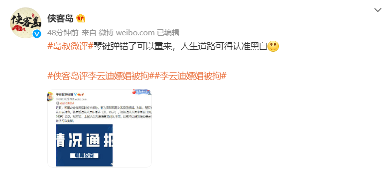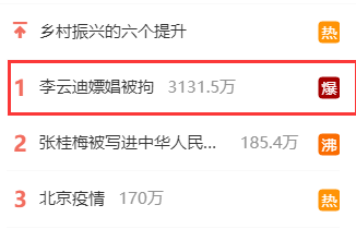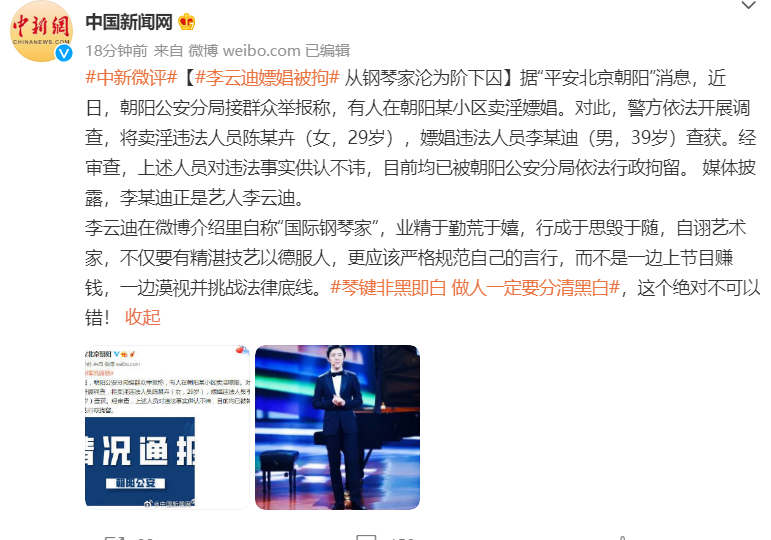 又见微博热搜出现“爆”。这一次引爆微博热搜的话题是:#李云迪嫖娼被拘#。