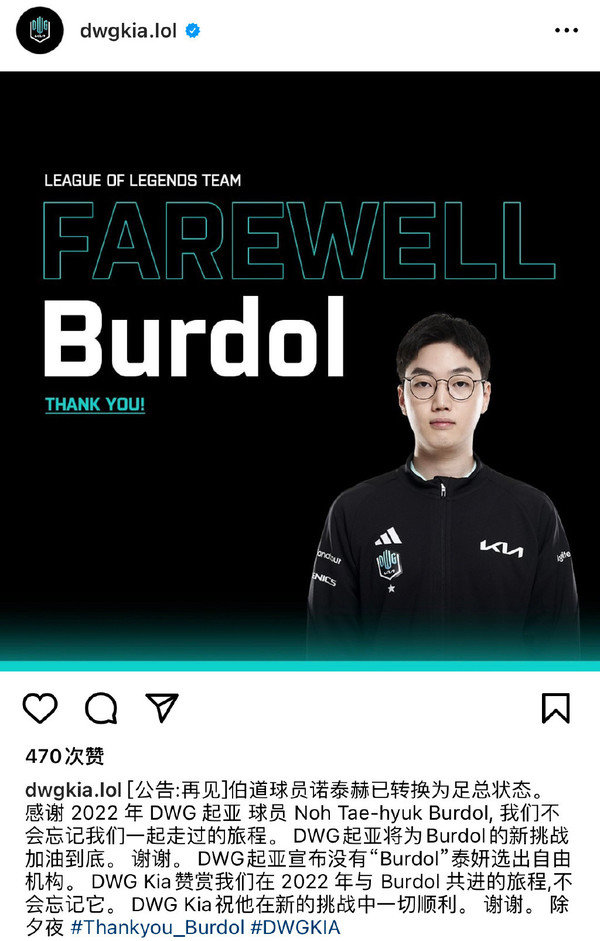 11月16日,DK战队官宣:两名上单选手Burdol和Nuguri成为自由人,监督kkOma合约到期,Daeny和Zefa终止合约。DK表示:“DWG KIA和kkOma监督的合约已经结束。这两年作为DK可靠的总指挥,DK十分珍惜与kkoma在一起的每一刻,并祝愿他在今后的工作中取得好成绩。”