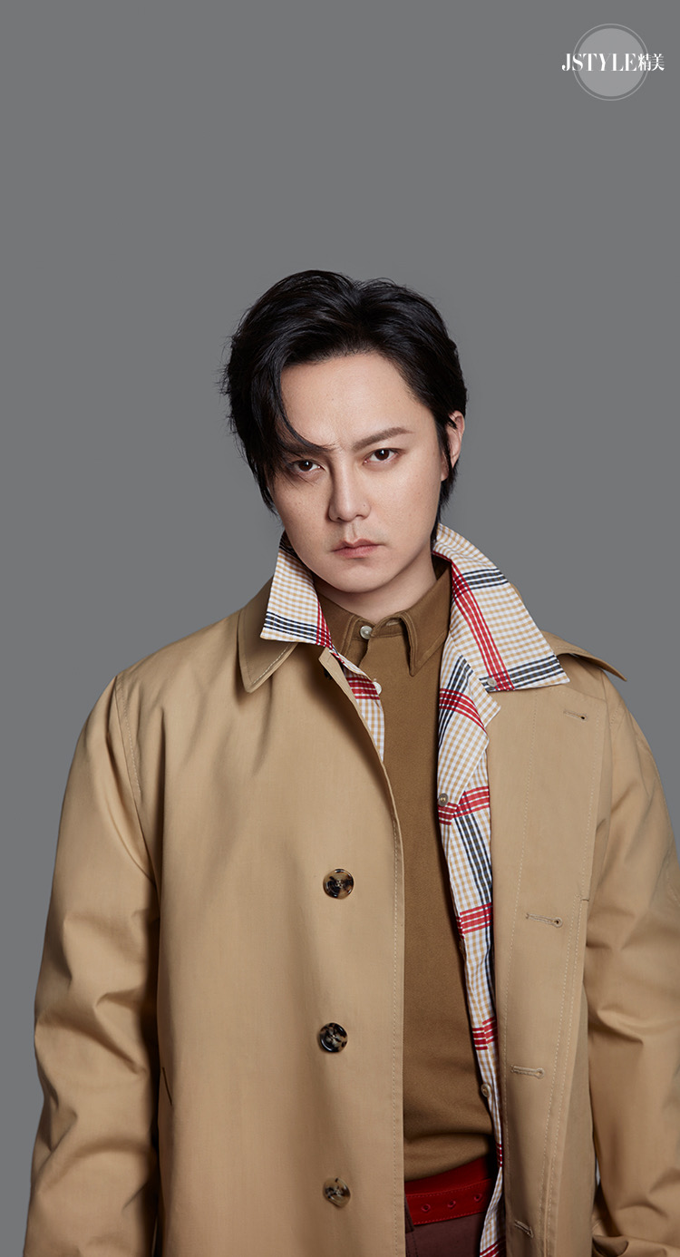 尹正用浅灰色工装裤和卡其色衬衫为型男Look加分,