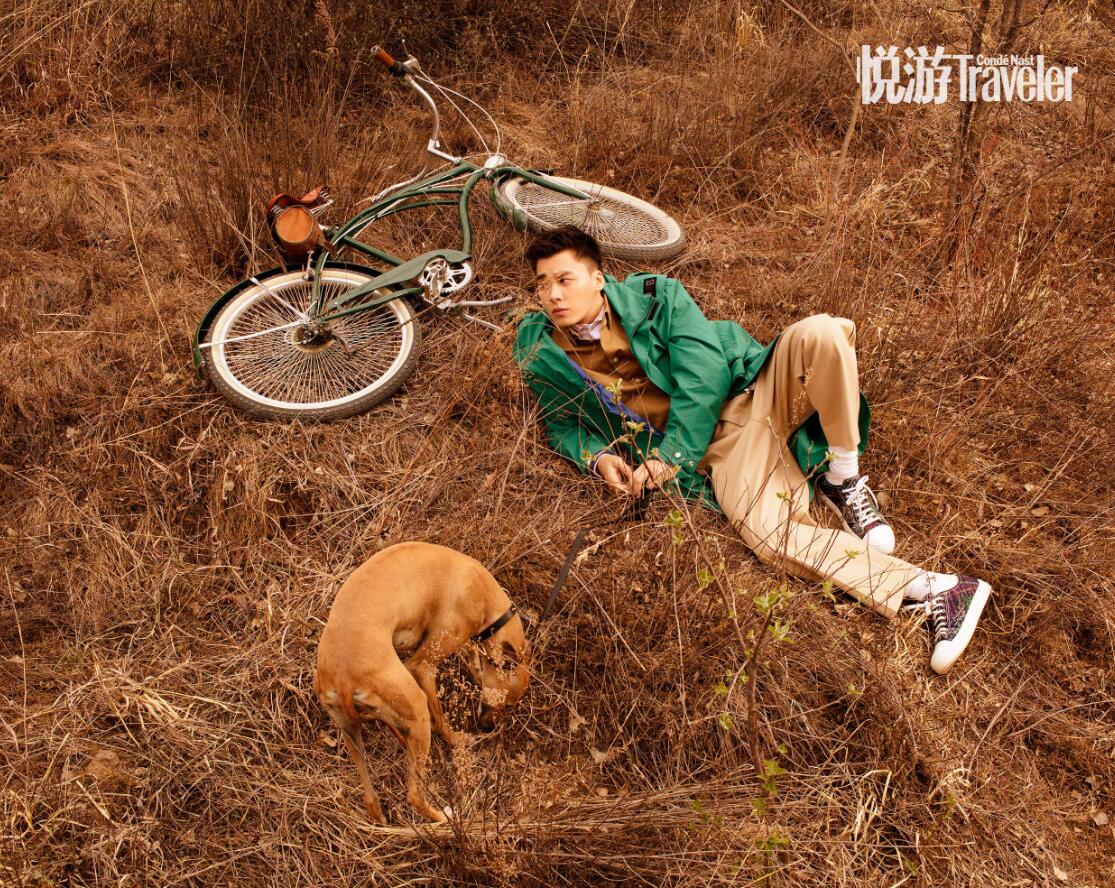 李易峰身着卡其色衬衫吸取了大自然的色彩精髓,