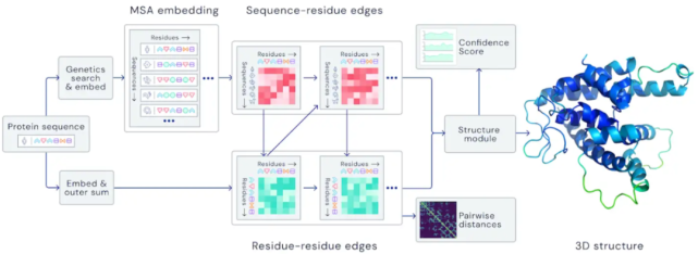 基于自注意力的 AlphaFold 架构。