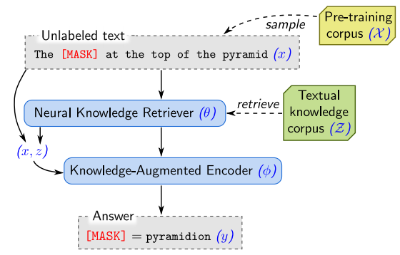 使用 REALM 进行无监督预训练,检索器和编码器经过了联合预训练。
