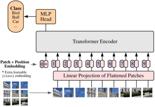 Vision Transformer 的论文中,研究者将 Transformer 编码器应用于平坦图像块。