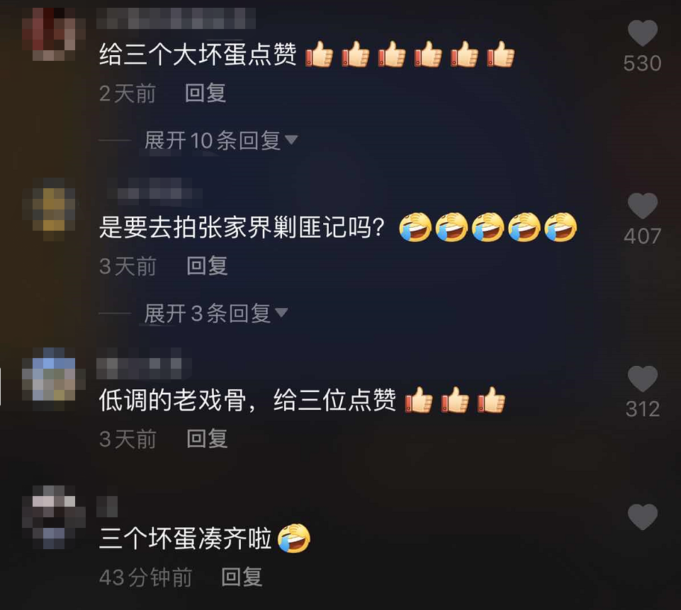 他们都曾塑造过许多经典的反派角色,看到"三大恶人"聚首,网友纷纷代入他们的角色在评论区留言:"为三个大坏蛋点赞。"