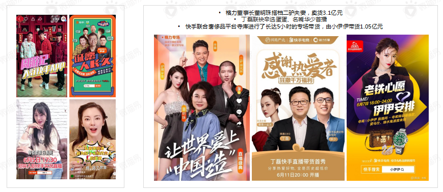 快手在明星化布局与企业联合快手红人直播等举措下,逐步拓圈,扩充头部红人类型,再次包装家族主播,弱化江湖草根味。