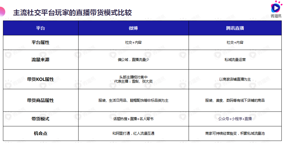 微博曝光重引流,腾讯更偏工具型目的:流量聚合,转化为商业价值。