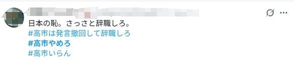 日本民众还发帖称,希望日本自民党高层为高市的不当发言承担责任。