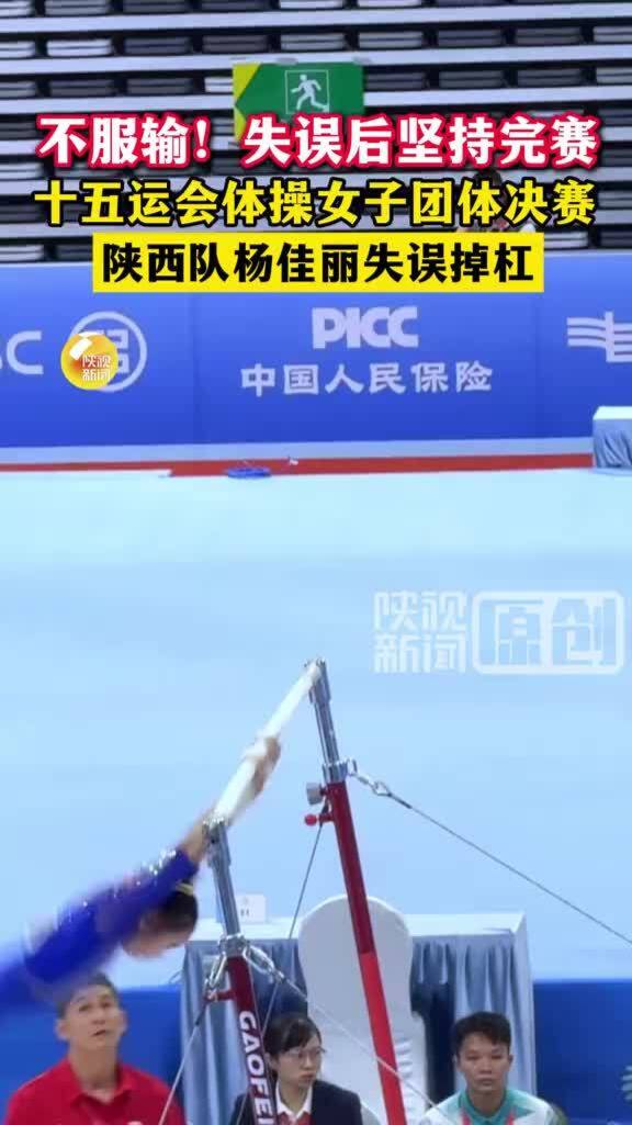 不服输!失误后坚持完赛。 十五运会体操女子团体决赛开赛,陕西省运动员杨佳丽在比赛中失误依然坚持完赛。得到 11.800分。(记者:周杰 任超 尚磊 王敬怡 )#陕耀十五运
