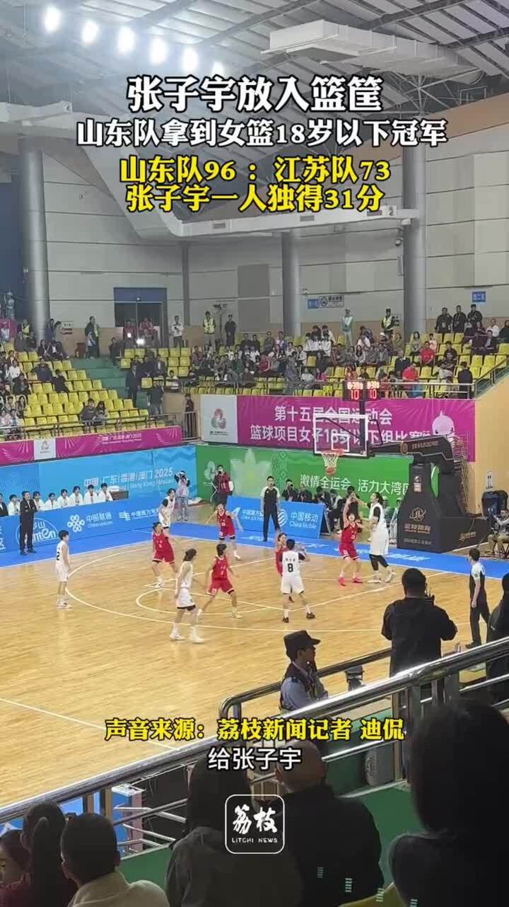 张子宇放入篮筐 山东队拿到女篮18岁以下冠军 山东队96 : 江苏队73张子宇一人独得31分