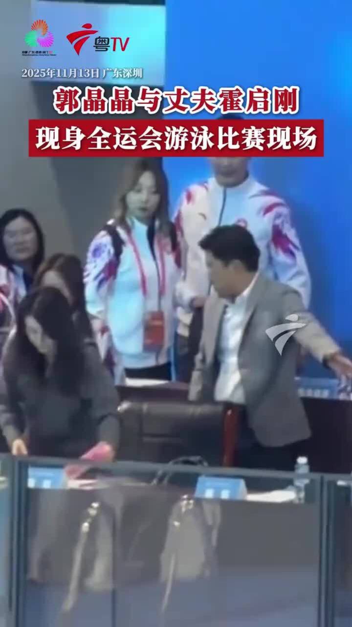 #郭晶晶与霍启刚一起观看游泳比赛 11月13日,郭晶晶与丈夫霍启刚,现身全运会游泳比赛现场,为参赛选手加油。(广东台记者 蒋弘业 谢健登)#2025全运会