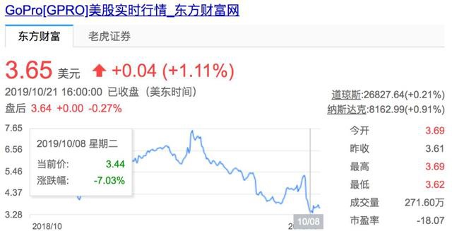 这个消息一出,直接导致GoPro公司股价盘后暴跌超过20%,盘后价为4.28美元,与巅峰时期每股接近100美刀相比,可谓一泻千里。