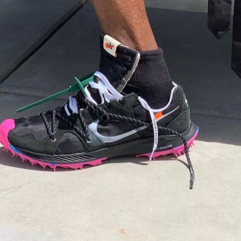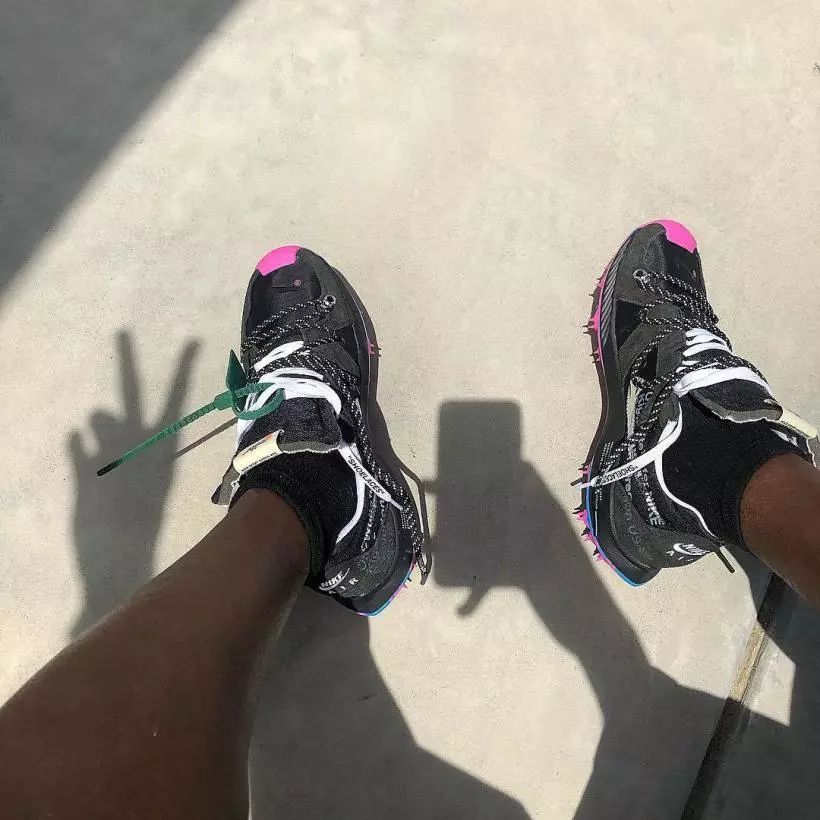 早前 2019 Coachella 音乐节期间,作为表演嘉宾之一的 Virgil Abloh 亦曝光了 Off-White™ 与 Nike 的全新联名鞋款。其设计风格与在 Off-White™ 2019 春夏女装系列发布会中亮相的 Vapor Street 相似,同样拥有繁复的细节,包括银色反光 Swoosh、签名式「Off-White™ for NIKE」字样和绿色「Zip-Tie」、加长的鞋舌、双重鞋带以及遍布粉色外底的鞋钉等等。目前尚未有该鞋款的发售信息,感兴趣的友达不妨留意阿YO的后续报道!