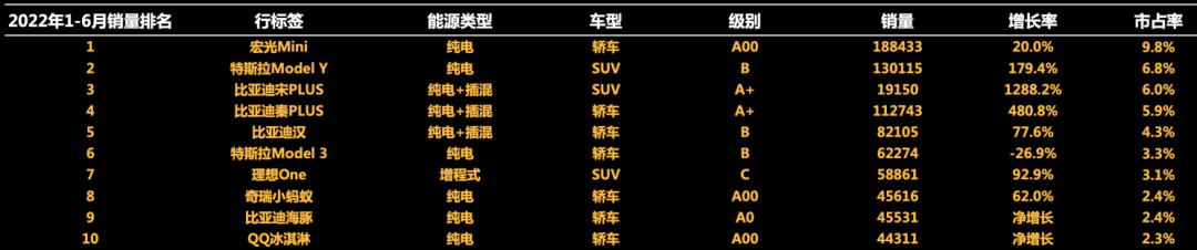 2022年上半年,A00级电动汽车销量开始触顶,市场份额也明显减小。