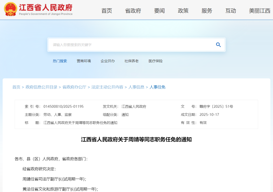 江西省人民政府关于周靖等同志职务任免的通知