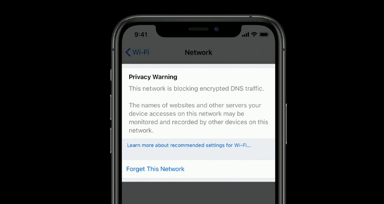 此外,Apple 的 DoH 和 DoT 实施也将具有上下文意识。开发人员还可以编写 “规则”以仅在某些情况或上下文中启用对加密 DNS 通信的支持,如果网络提供商阻止其网络上的加密 DNS 通信,Apple 还计划警告用户以便他们可以采取其他措施来保护自己的隐私。