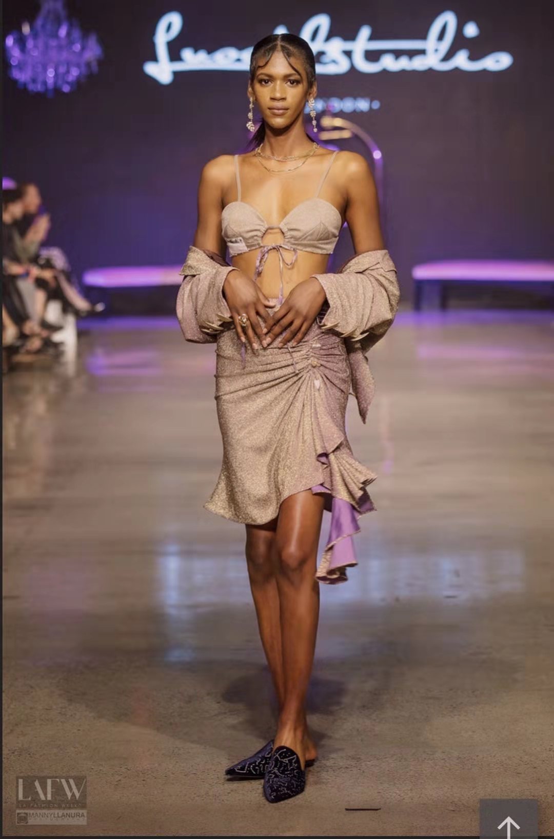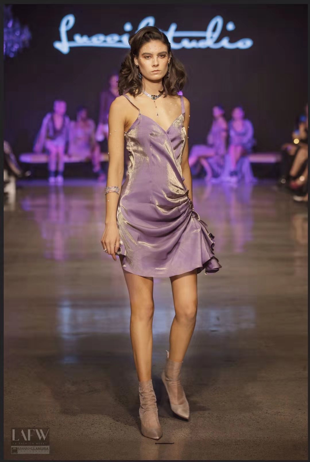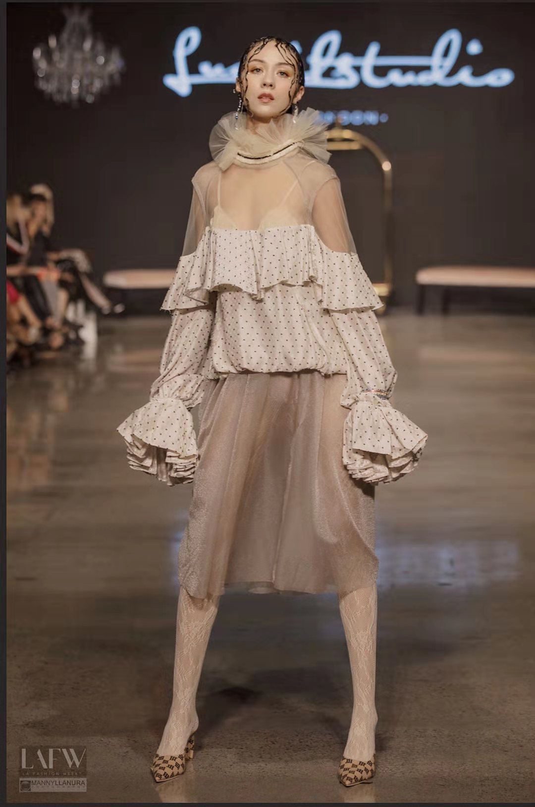 “万紫千金”和“贵气逼人”是这个季度的主打。大量的螺旋形荷叶边叠层和LUOOIFSTUDIO一直以来坚持的小翘臀,小蛮腰的S型弧版设计再加上这季度特有的休闲和偏运动元素,从中表达出的潇洒,高贵,挣扎,抗争,糅合等元素恰好和主题的“second face”相呼应,在这个主题内我们更多用服装载体表达的是其挣扎性,不和谐性以及最后一切都包容的特点和性质。S/S 2020对于很多人来说都是奋斗和挣扎的一年,从人性的:双层面具“second face”就可以发现,很多虚伪的面具都被社会徒手撕裂,很多隐藏不住的野心都被放大到了光影下,林林种种的挣扎和奋力向上的缘由都会被舞台记录成为LUOOIFSTUDIO S/S 2020的养分。本个季度的色彩非常浓烈,从金紫色到布鲁士蓝再从布鲁士蓝到香槟白,颜色强烈的对比以及颜色强烈的碰撞让观众欲罢不能。