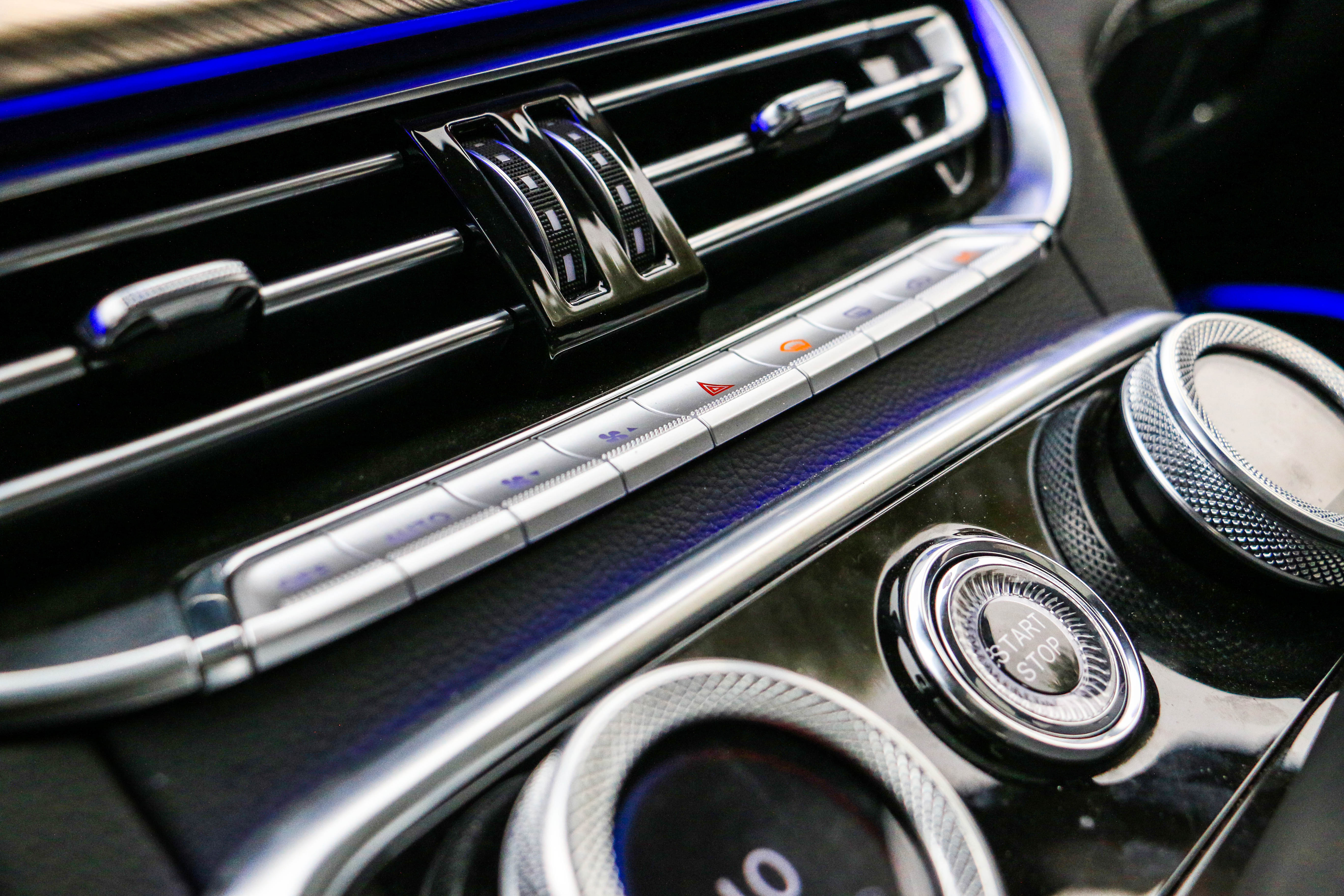 空调控制区域以硕大的圆形物理旋钮为主,无论是阻尼还是操作手感都堪称前端水准。而在四区恒温独立空调基础上,还融入了PM2.5空气净化系统,在检测到空气质量的变化后,会自行进行调节内外循环。