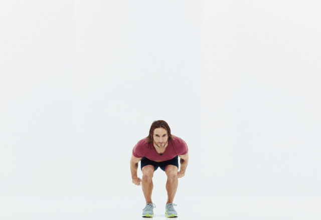 动作要领:保持腰背挺直,落下时尽可能让大腿与小腿保持垂直状态。