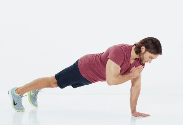 动作要领:身体成一条直线,臀部不要撅起也不要下榻,腹部力量保持身体平衡。