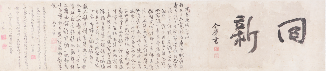 在一年多的筹展时间里,遇到许多令人惊叹的事情。比如说发现广东省博物馆所藏的《诸今(天然和尚诸弟子)为崔夫人祝寿诗卷》和广州市海幢寺藏的《释函昰(天然和尚)行书为崔夫人祝寿七言诗轴》,是同一年天然和尚及其弟子为崔夫人祝寿的书法;广东省博物馆收藏了一件谢兰生画给海幢寺住持澄波和尚的绘画,而海幢寺收藏了一件黎简写给澄波和尚的书法,黎简和谢兰生在广东艺术史上并称“黎谢”。